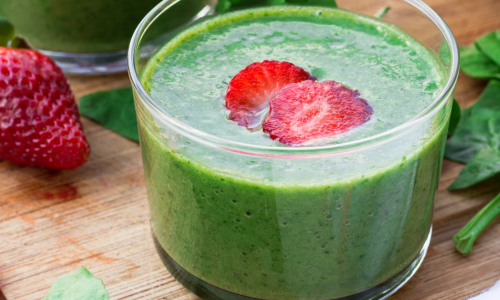 Combine all ingredients in a blender, mixing until smooth. HEALTHY BOOST: add 1 TBSP chopped mint leaves