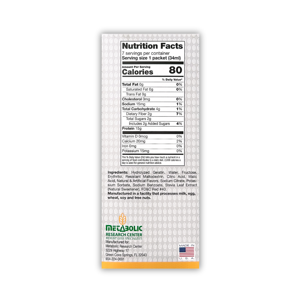 Mixed Berry Protein Drink (7 Count) Metabolic Research Center's Mixed Berry Protein Drink is a High Nutrient Supplement using the highest quality ingredients and 15g of protein. BENEFITS:  15g Protein per...