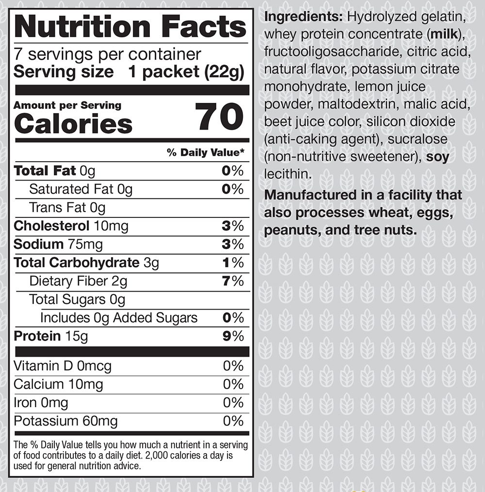 - Includes collagen protein